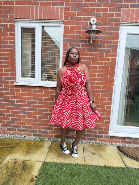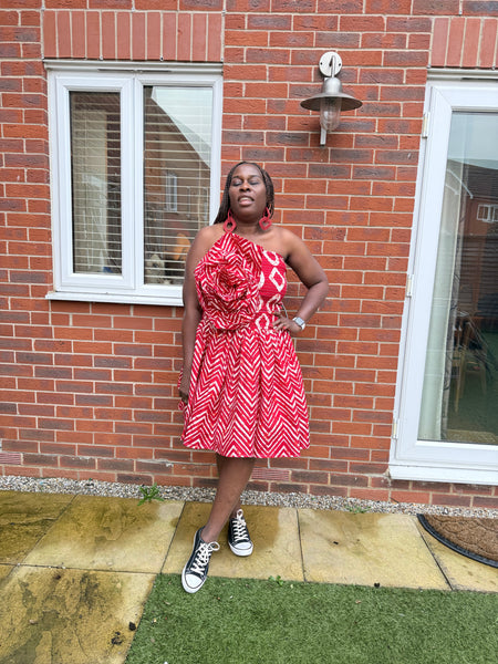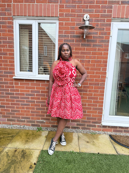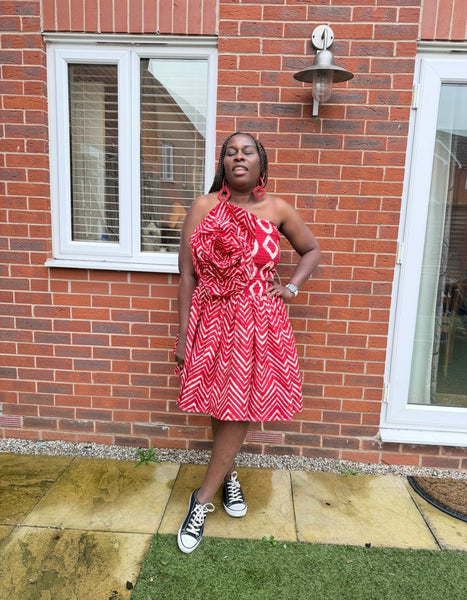 Bustier has Ankara flower detailing an